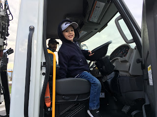 For the opening of the Herriman City Hall, they had an event where you could sit in different tractors and trucks. Even thought it was cold outside, we knew Jace would really like going. They got to go in a little fire truck, a street sweeper, and a backhoe, and a tractor.